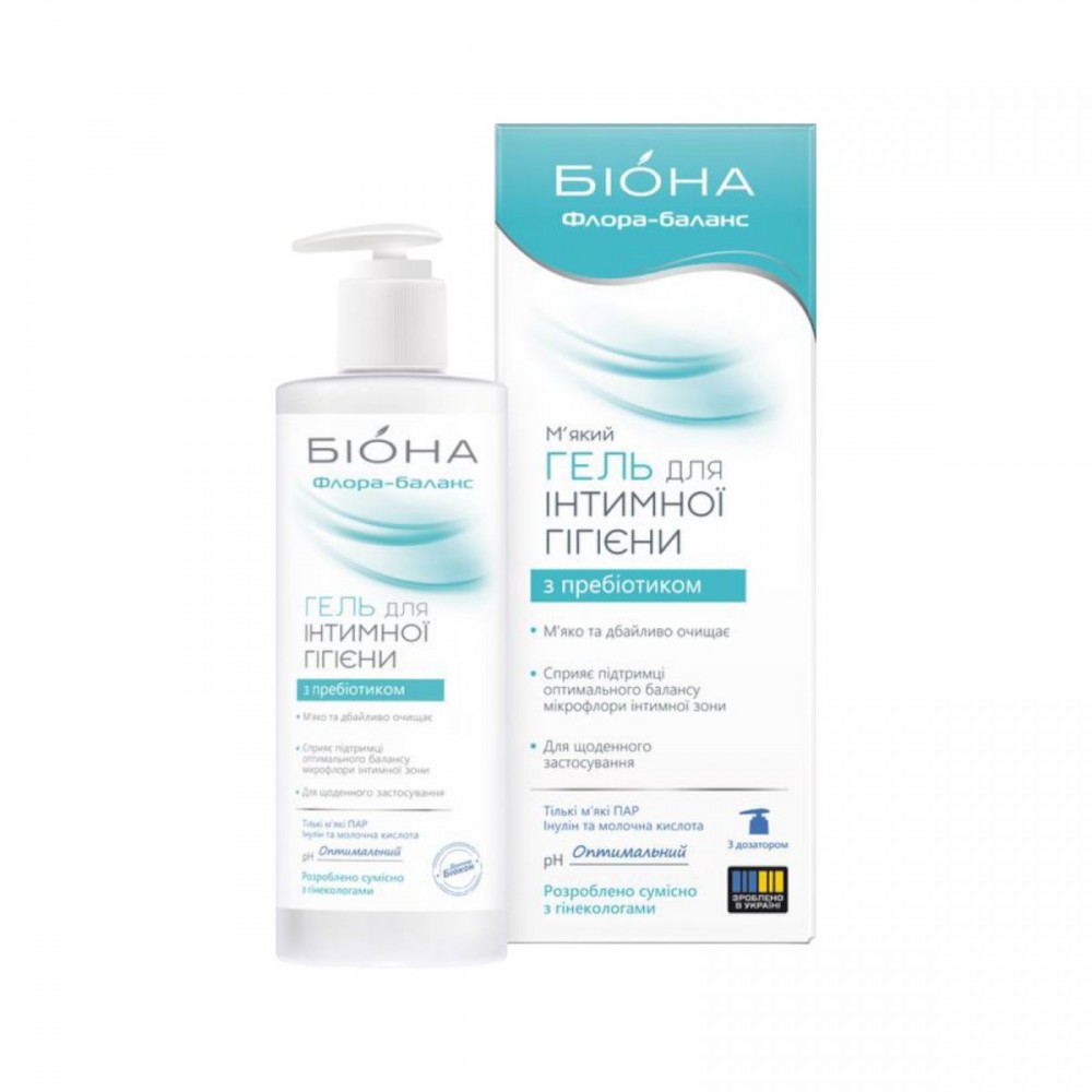 Биона Флора-баланс – мягкий гель для интимной гигиены с пребиотиком. Благодаря современной системе мягких ПАР, гель бережно ухаживает за интимной зоной, способствуя ощущению чистоты и свежести. Формула средства обогащена натуральным пребиотиком, усиливающим естественные защитные свойства микрофлоры интимной зоны.