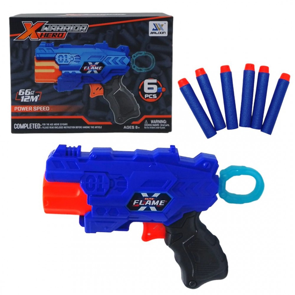 Бластер с мягкими поролоновыми снарядами, предназначенный для активных игр. Обеспечивает дальность выстрела до 12 метров, что делает его идеальным выбором для захватывающих сражений на открытом воздухе. Легкий и удобный в использовании, подходит для детей и взрослых.