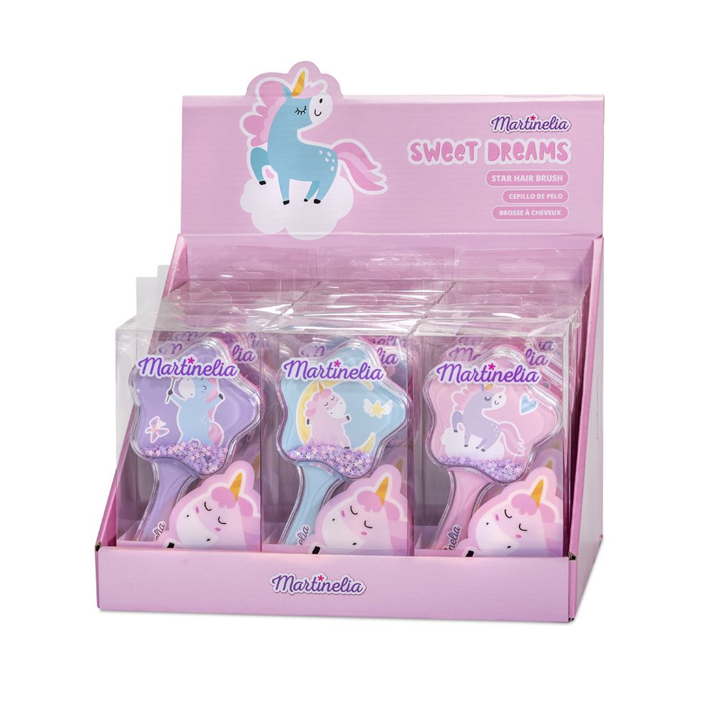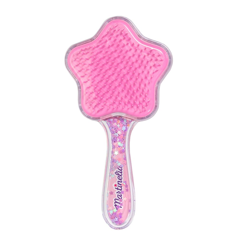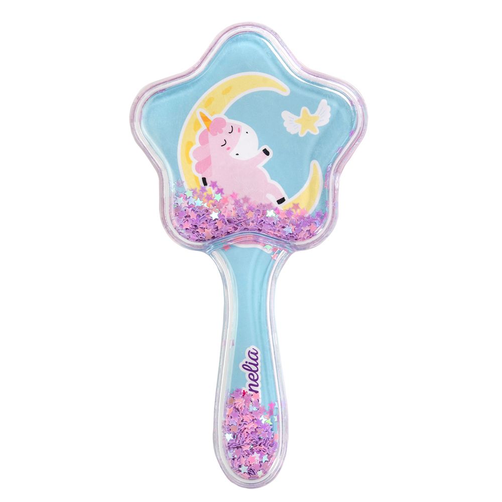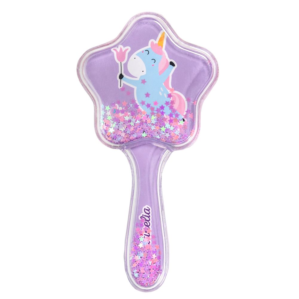 Расческа для волос Martinelia Unicorn Star Hair Brush на одной стороне которой изображен красивый милый единорог, а по всей длине с обеих сторон блестит декоративная звезда. Трясется и сияет каждый раз, когда вы расчесываете волосы. Легко и безболезненно расчесывает волосы, так как щетка имеет специальные легко распутывающиеся силиконовые зубцы. Прическа становится забавой, как игрушка. Идеально подходит для всех типов волос. Доступна в трех оттенках: сиреневом, розовом и ярко-зеленом.