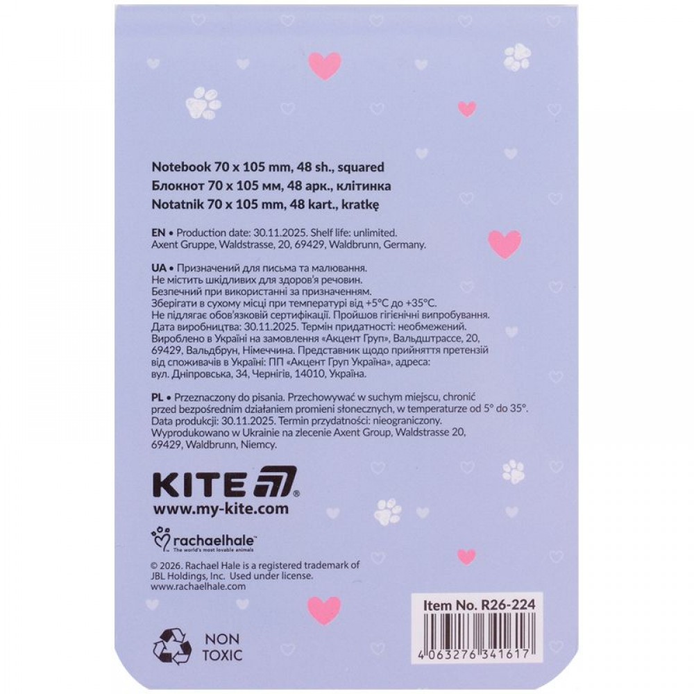 Блокнот Kite на прочном клеевом соединении. Имеет глянцевую бумажную обложку. Белые плотные (70 г/м²) листы разлинованы клеткой. Мини-блокнот удобный, на обложке изображен любимый персонаж. Изделие прошло гигиенические исследования. Рекомендовано детям дошкольного и школьного возраста.