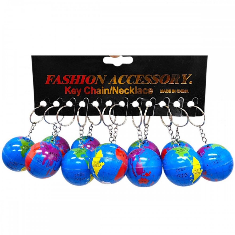Брелок «Глобус» - 12 шт. Металлическое кольцо и цепочка