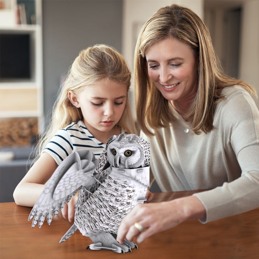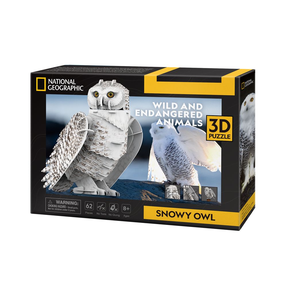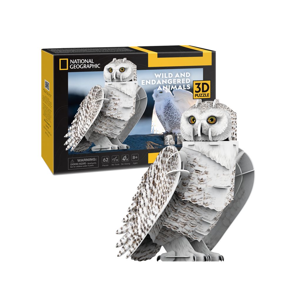 Развивающий 3D пазл для детей и взрослых CubicFun в виде Снежной совы с подставкой-декором. Эта серия National Geographic Исчезающие животные выпущена в честь 50-летия Закона о видах, находящихся на грани исчезновения Сова умеет отлично вращать голову и махать крыльями. Высокий уровень детализации. Детали надежно крепятся между собой без дополнительной фиксации (без клея, ножниц), создавая единую конструкцию. Стильный дизайн. Отлично развивает мелкую моторику. Размер готового изделия 17х17,3х24,6 см