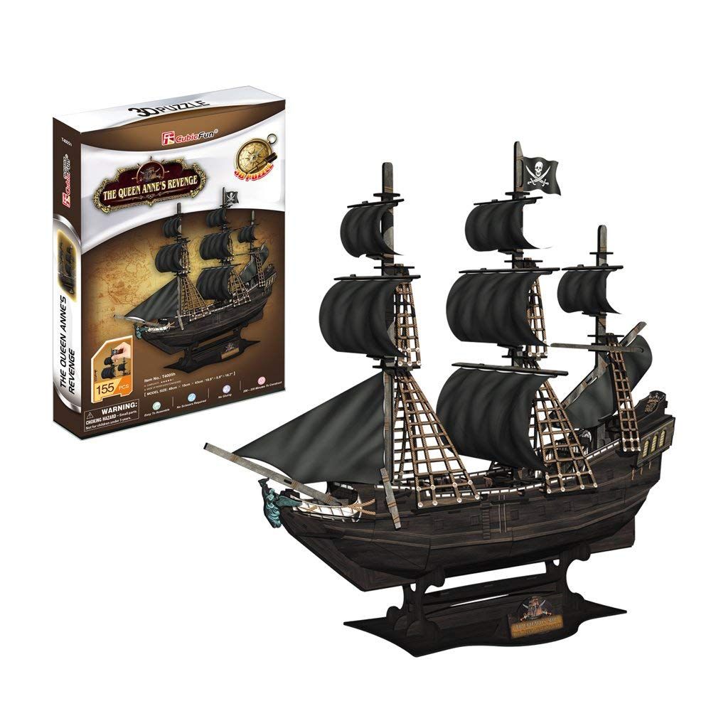 3D пазлы CubicFun - объемные конструкторы-головоломки, которые выглядят совсем как настоящие и с исторической точностью повторяют каждую деталь внешнего вида кораблей. Вокруг пиратских приключений всю жизнь шли споры - что из этого правда, а что выдумка. Многие вещи и до наших дней остаются под завесой неизвестности, но есть и такие, которые историкам все же удалось найти. К эти, несколько уникальным вещам относится флагманский корабль Чорной Бороды Месть королевы Анны