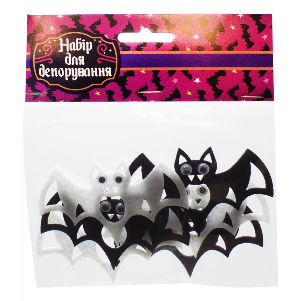 Набор декоративных летучих мышей из фетра. Включает в себя 6 летучих мишек: 3 черного и 3 белого цвета. Размер 1 мышки - 5х8,5 см.