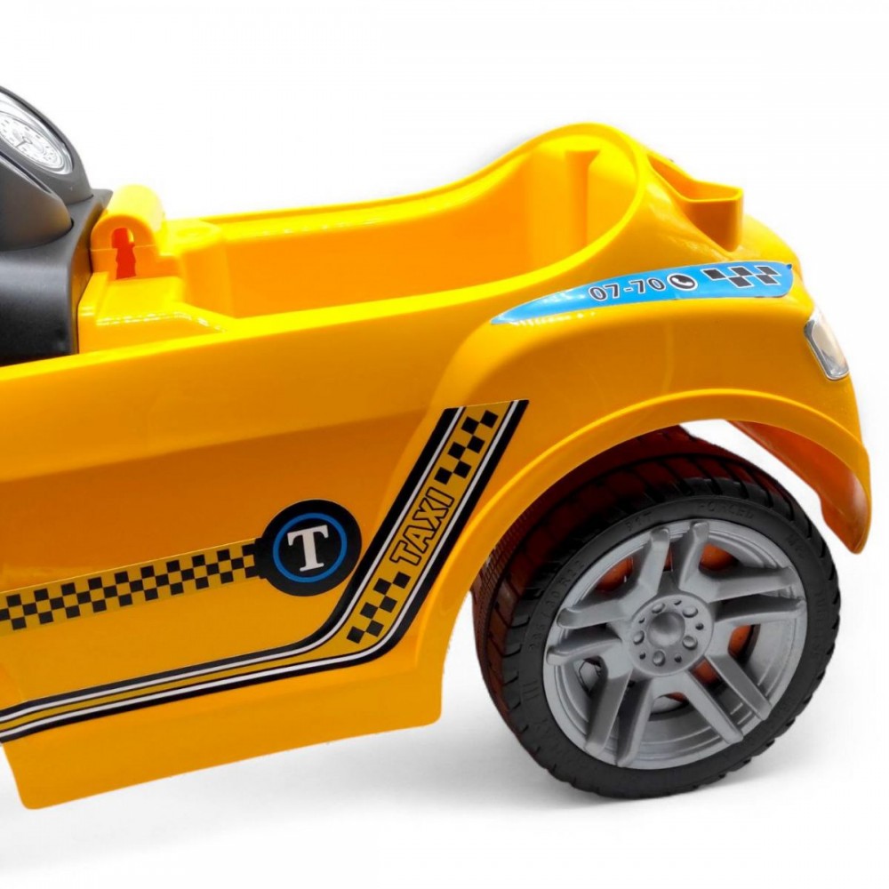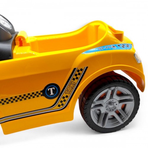 Машинка каталка. Открывается капот и сидения. Под сидением расположен вместительный отсек для игрушек. Чтобы начать движение, ребенку нужно оттолкнуться ножками от земли, регулируя направление движения рулем. Допустимая нагрузка: до 23 кг.