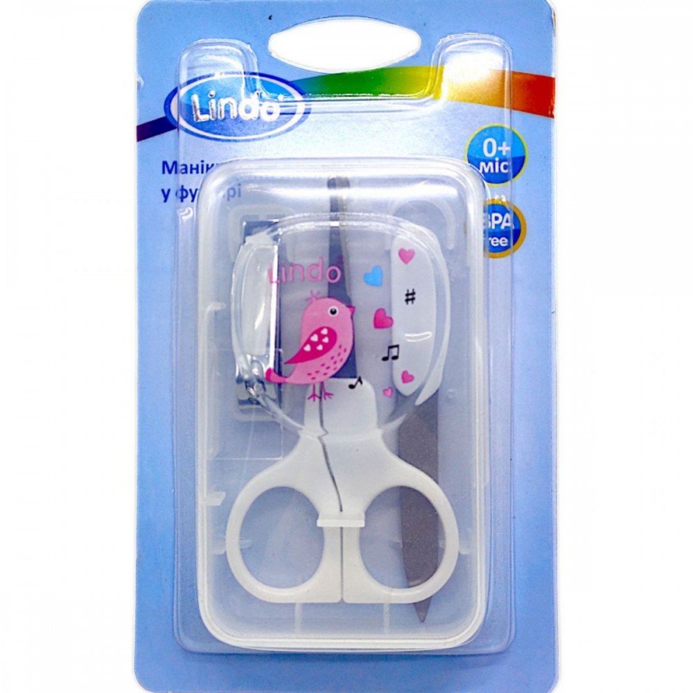 Детский маникюрный набор в футляре. В состав входят все необходимые инструменты по уходу за ногтями малыша: ножницы с закругленными концами, пилочки и щипчики. Ножницами можно легко укоротить и подправить форму ногтей, пилочка нужна для шлифования и избавления от зазубрин и щипчики для откусывания отросших ногтей. Изготовлен из пластика и нержавеющей стали.