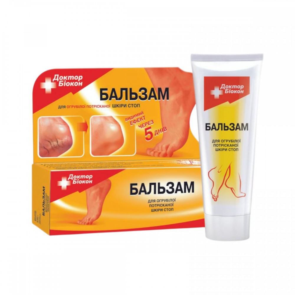 Бальзам Доктор Биокон для огрубевшей, потрескавшейся кожи стоп рекомендован для ухода за сухой, потрескавшейся кожей стоп.Действие: размягчает и мягко отшелушивает огрубевшую кожу стоп. Уменьшает трещины на стопе и препятствует их образованию. Снижает потливость, угнетает неприятный запах. Возвращает коже ног привлекательный внешний вид, предотвращает сухость стоп, образование натоптышей. Придает ногам чувство комфорта и свежести.Способ применения: наносить на кожу стопы массирующими движениями до полного впитывания дважды в день (утром и вечером). Особое внимание уделять участкам с огрубевшей кожей (пяти, пальцы ног, наружный край стопы). При сильном ороговении рекомендуется щедро наносить бальзам под хлопчатобумажные носки на ночь, после чего удалять размягченную бальзамом кожу с помощью пемзы или любым другим способом. Регулярное применение бальзама (10-дневный курс) обеспечивает устойчивый результат. Может быть использован для ухода за кожей локтей и колен. Активные компоненты: салициловая, гликолевая кислоты, метилурацил, триклокарбан, пантенол, масло карите, ланолин, экстракт календулы. Состав: вода деминерализованная, цетостеарол, каприлик/каприк триглицериды, ПЭГ-400, подсолнечное масло, цетеарет, мочевина, циклометикон, салициловая, гликолевая кислоты, натрия гидроксид, метилурацил, винная кислота, пантанол, метилпарабен, парфюмерная композиция, триклокарбан, динатрий ЭДТА, БОА, пропилпарабен, бронопол, экстракт календулы.