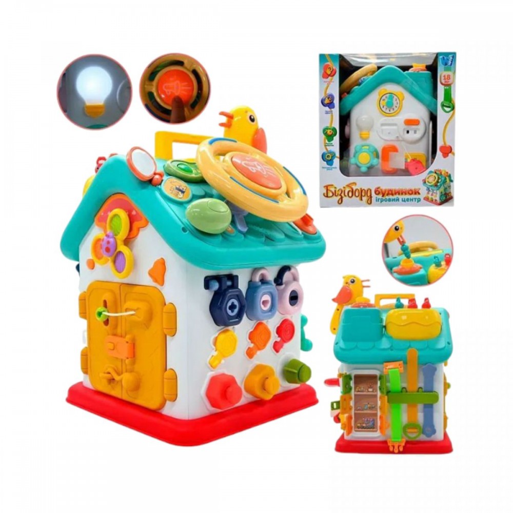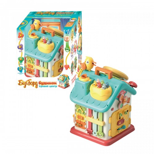 Интернет-магазин eToys предлагает вашему вниманию товар "Дом бизиборд, ОСВУЧЕНИЕ УКРАИНСКИМ ЯЗЫКОМ, 15 сказок, 15 песен, 10 скороговорок, руль, застежки, замки, "Накорми птичку", в коробке" по цене 1 764 грн..