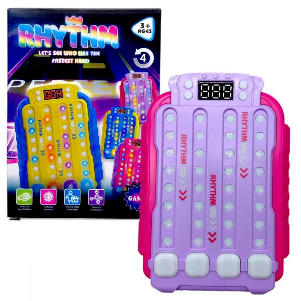 Электронная игра «Ритм» – динамическая развлекательная игрушка, тренирующая скорость реакции, координацию и внимание. Задача игрока – вовремя нажимать кнопки в соответствии со световыми и звуковыми сигналами.