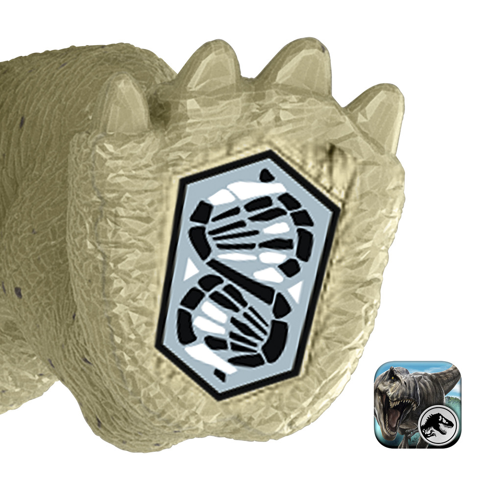 Отсканируйте код отслеживания на лапе динозавра в бесплатном приложении Jurassic World Play App (доступно для Android и iOS, устройство не входит в комплект). Это позволит разблокировать виртуальную версию вашего динозавра и погрузиться в увлекательные игровые миры: соревнуйтесь на разнообразных транспортных средствах по суше, в воздухе и на море, а также примите участие в динамичном шутере, добывая ДНК динозавров!