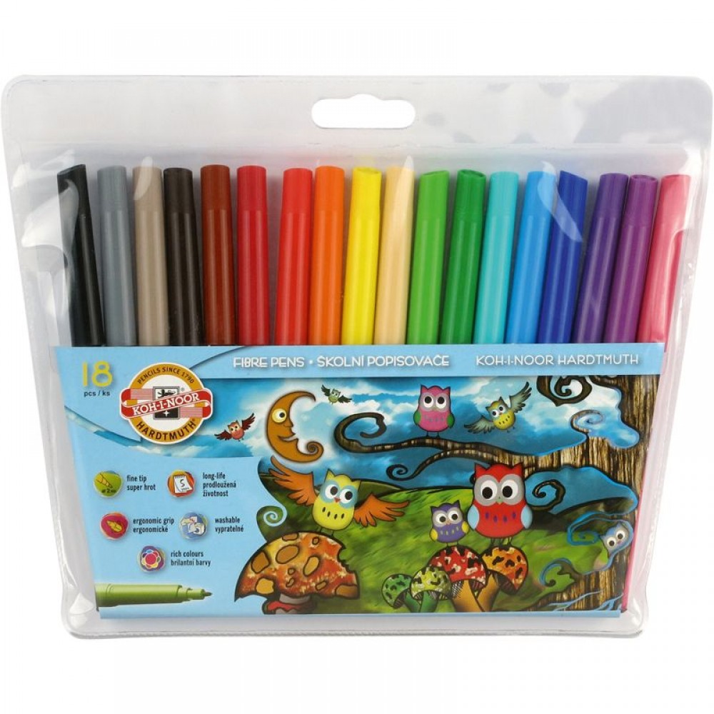 Классические школьные фломастеры. Волокнистый пишущий узел оставляет яркий след, пишет мягко и не царапает бумагу. Вентилируемый колпачок делает процесс рисования безопасным. Соответствуют европейскому стандарту EN-71. Срок годности — 5 лет.