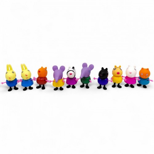 Набор фигурок в виде любимых персонажей из мультфильма – это отличный способ погрузиться в мир веселых приключений. В комплекте 10 фигурок персонажей из мультика Peppa Pig, которые подарят ребенку часы радости и творчества. Тело игрушек выполнено из безопасного и прочного пластика, голова – резиновая. Персонажи тщательно прорисованы, что делает их максимально похожими на экранные версии. Фигурки имеют подвижные конечности, голова – вращается. С таким игровым набором ребенок может разыгрывать любимые сцены из мультика или придумывать свои собственные истории. Это не только способ развлечься, но и возможность развивать детское воображение, мелкую моторику и навыки общения.