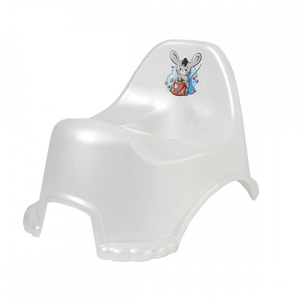 Горшок классической формы оснащен высокой спинкой, чтобы позвоночник крохи даже при длительном сидении не поддавался дополнительной нагрузке. Между ножками предусмотрена небольшая перегородка, чтобы жидкость не проливалась.