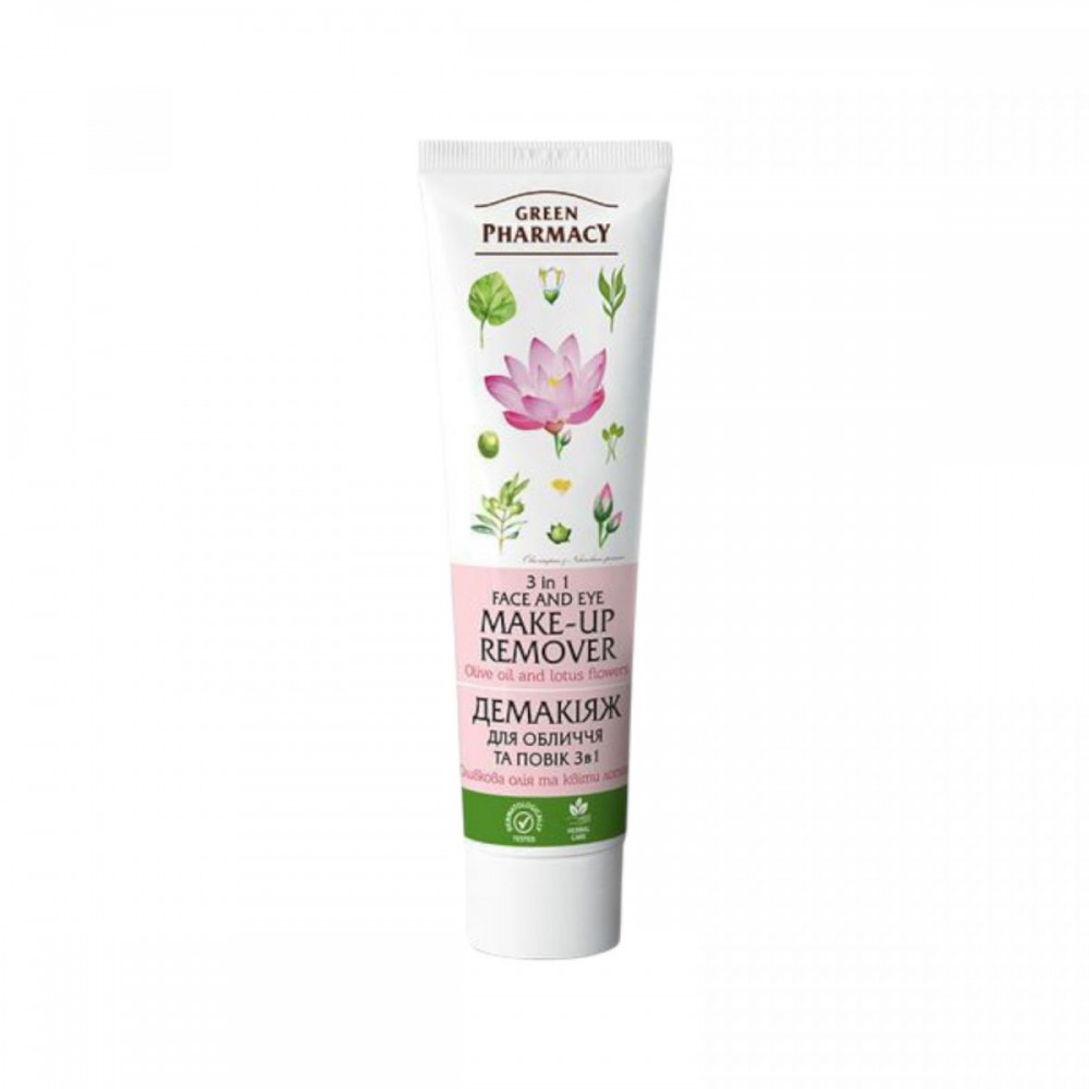 Для всех типов кожи. 3 в 1. Очистка. Питание. Восстановление. Правильное очищение – обязательное условие красоты и молодости кожи. Деликатно очищая кожу, Green Pharmacy Демакияж позволяет быстрее обновляться коже и сохраняет здоровый внешний вид. Готовит кожу к дальнейшему уходу. Активные компоненты: оливковое масло, экстракт лотоса, пчелиный воск, масла кокоса, аллантоин, витаминный комплекс (Е, А, РР, В1, В7). естественной защитой. Восстанавливающий – экстракт лотоса, масло кокоса и пчелиный воск создают на коже невидимую защиту, восстанавливают и регенерируют, возвращая упругость. Интенсивно питает – оливковое масло, аллантоин и витаминный комплекс интенсивно питают, смягчают, успокаивают кожу, придают. Способ применения: нанести на косметический спонж и легкими массирующими движениями удалить макияж. Только для наружного применения. При попадании в глаза промыть водой.