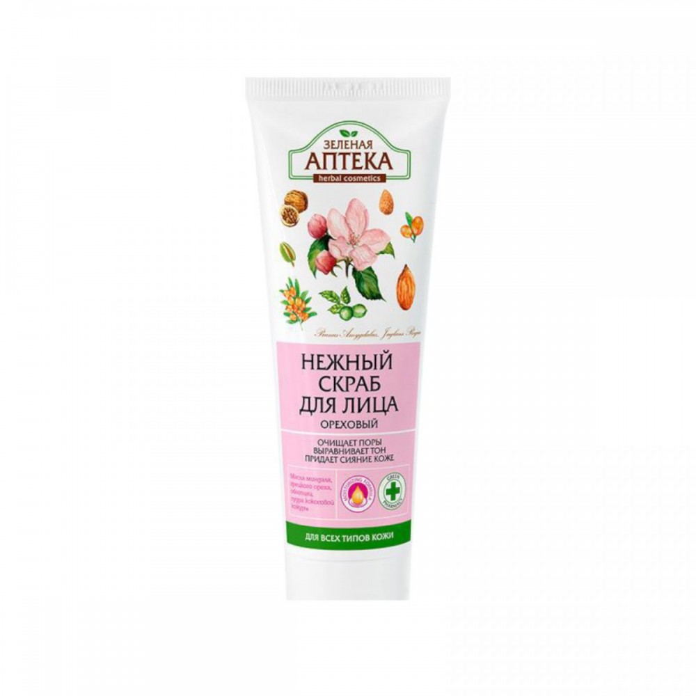 Очищает поры. Выравнивает тон. Придает сияние коже. Масла миндаля, грецкого ореха, облепихи. Нежная пудра кокосовой кожуры бережно шлифует кожу лица, обеспечивает мягкий и эффективный пилинг. Комплекс питательных ореховых масел (миндаля и грецкого ореха) способствует улучшению цвета кожи и ее текстуры, выравниванию тона лица. Масло облепихи регенерирует кожу. Аллантоин увлажняет и смягчает кожу. Пироктон оламин - антибактериальная добавка - защищает кожу, препятствует возникновению покраснений. Способ применения: нанести небольшое количество скраба на кожу лица и шеи массирующими движениями, после смыть теплой водой. Для лучшего скольжения рекомендуется немного увлажнить кожу водой.