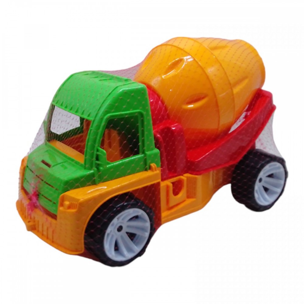 Бетономешалка, разноцветная, пластикова, имеет подвижные элементы.