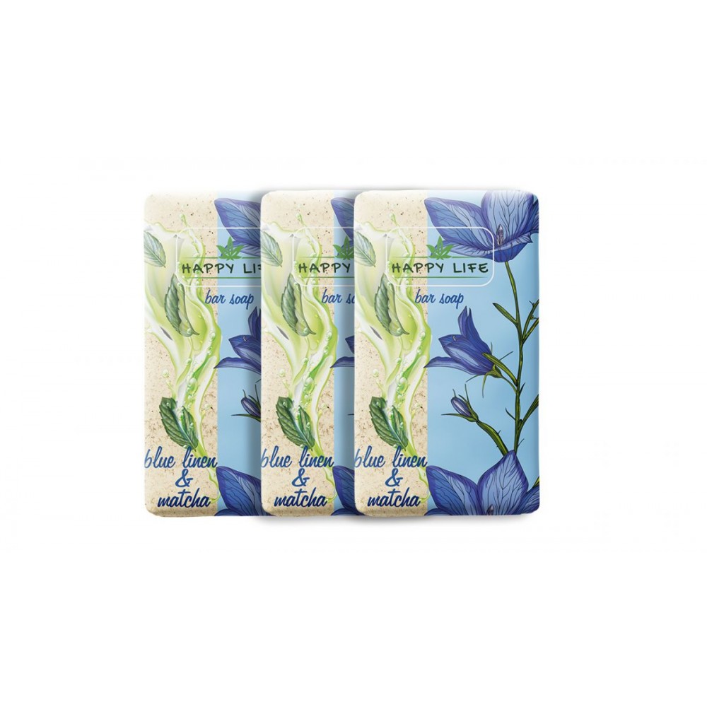 Твердое мыло Happy Life с экстрактами синего льна и матча предназначено для ежедневного очищения кожи. При намокке создает густую кремовую пену, которая эффективно удаляет загрязнение, оставляя кожу мягкой и свежей. Натуральные компоненты, включая экстракты матча и семена льна, оказывают смягчающее и увлажняющее действие. Аромат сохраняется после использования. Каждое мыло упаковано индивидуально.