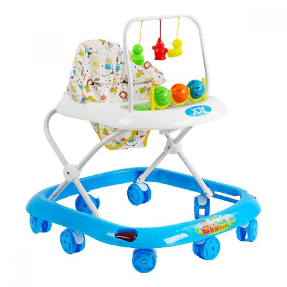 Ходунки изготовлены из крепкого пластика, имеют металлический каркас в форме трубчатых конструкций. Сидение для малыша создано из мягкого и приятного материала для большего комфорта. Существует возможность регулировки высоты в пяти разных положениях благодаря пластиковому фиксатору на пружине.