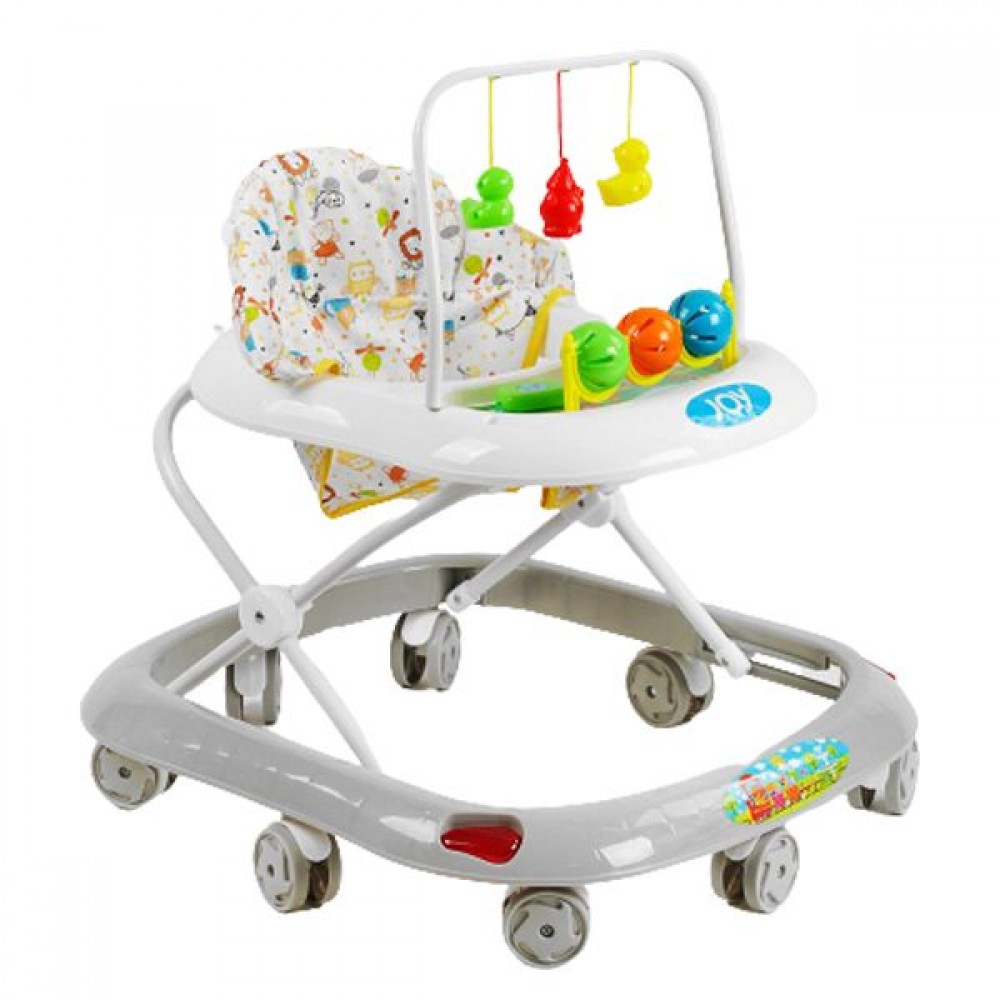 Ходунки изготовлены из крепкого пластика, имеют металлический каркас в форме трубчатых конструкций. Сидение для малыша создано из мягкого и приятного материала для большего комфорта. Существует возможность регулировки высоты в пяти разных положениях благодаря пластиковому фиксатору на пружине.