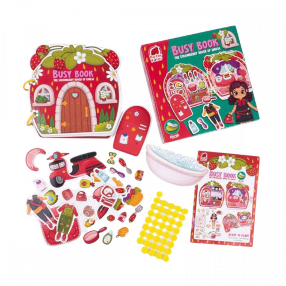 Настольная игра Бизи Бук. Клубничный домик Эмилии – это отличный выбор для развития ребенка. Игра укомплектована отдельными деталями и липучками велкро, объединяющими между собой и цепляющимися на страницы без бука с также уже закрепленными липучками. В итоге детали на липучке ребенок может самостоятельно крепить и отцепить. Комбинируйте, сравнивайте, играйте и учитесь! Бизи бук портативный и идеально подходит для совместной игры с родителями. Сочетает развлечение и обучение, способствует развитию мелкой моторики, координации, тактильных ощущений и воображения. Стимуляция зрительного восприятия, развитие когнитивных и эмоциональных навыков.
