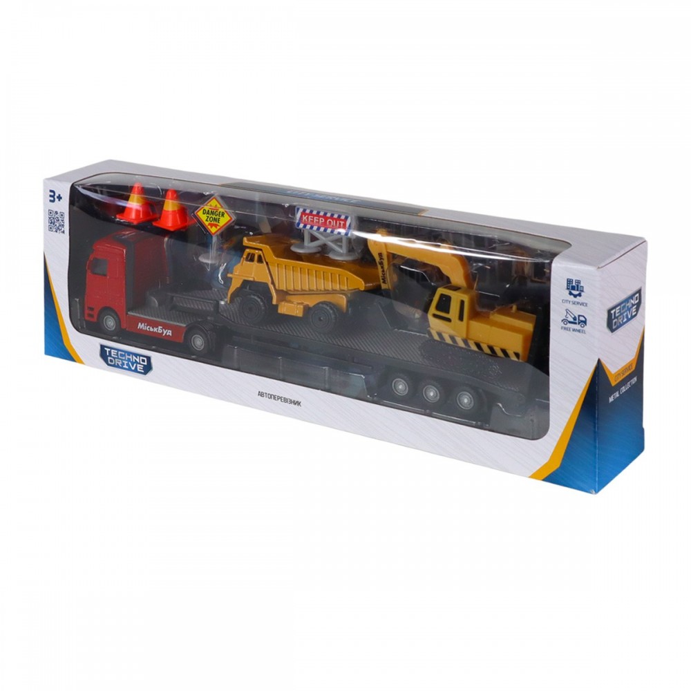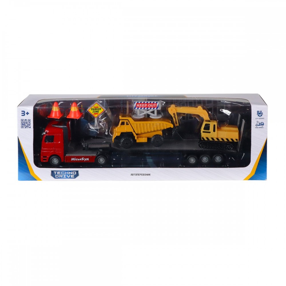 1 автоперевозчик, 1 самосвал, 1 экскаватор, аксессуары