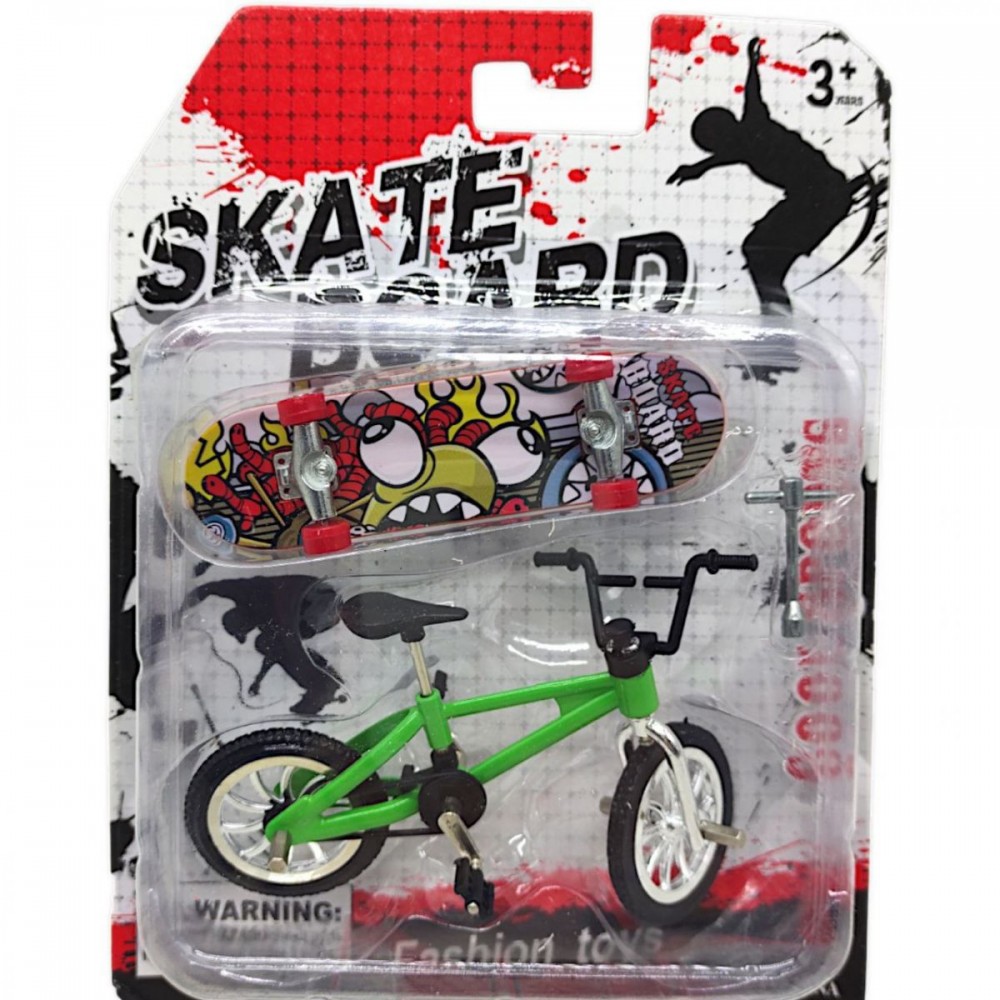 Игровой набор включает в себя различные виды мини-транспорта, предназначеного для катания и трюков с помощью пальцев. В комплекте есть мини велосипед и фингерборд. Размер велосипеда: 10х7х3 см. Размер фингерборда: 9 х 2.5 х 2 см. Игра с набором развивает мелкую моторику рук и усидчивость. Разные виды в ассортименте.