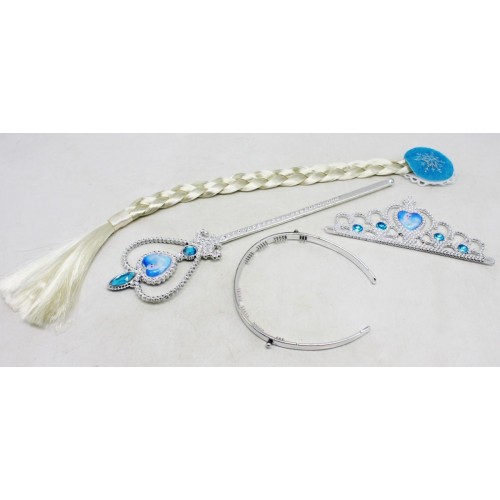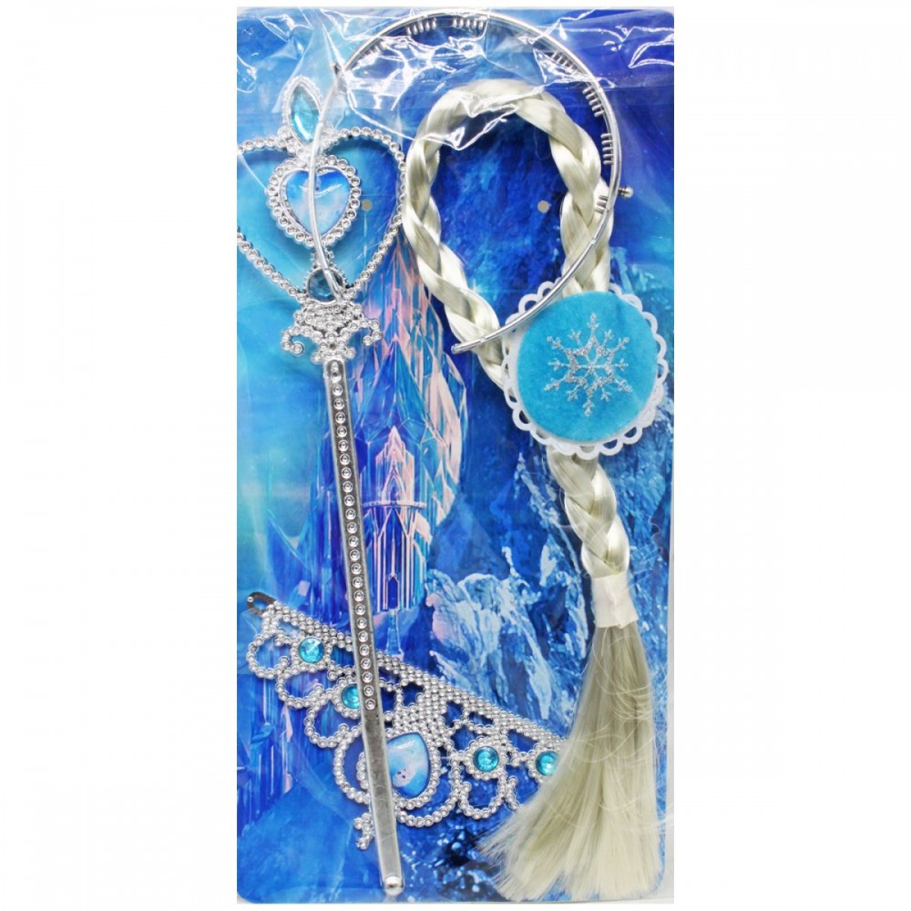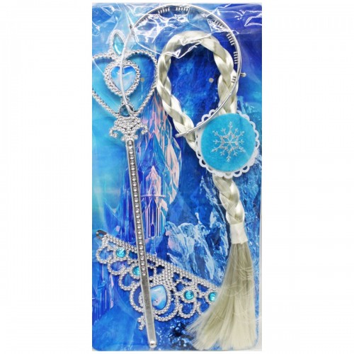 Игровой набор, с которым ребенок сможет представить себя любимым героем из популярной серии мультфильмов "Холодное сердце". В комплекте есть коса на заколке, волшебная палочка и корона с обручем (нужно закрепить корону самостоятельно). Длина косы - 50 см. Диаметр обруча - 11 см.
