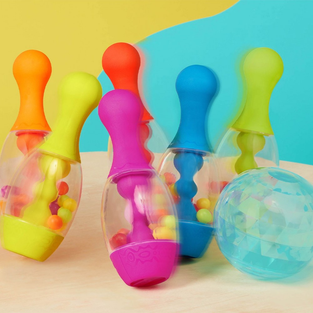 Правила достаточно просты: ребенку необходимо за наименьшее число бросков сбить все кегли с помощью шара. Когда вы собьете кегли метким ударом, разноцветные шарики будут подпрыгивать внутри, добавляя безумного прыжкового веселья к классической игре. А благодаря подставке боулинг удобно брать с собой куда угодно.