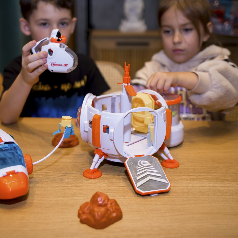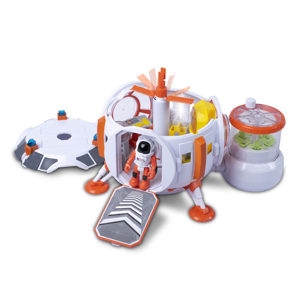 Основные компоненты: Игрушка Главная станция - 1шт. Игрушка Теплица - 1 шт. Фигурка (Астронавт и рюкзак) - 1шт. Робот - 1шт, Инструмент - 4шт. Несветящийся камень - 1шт.