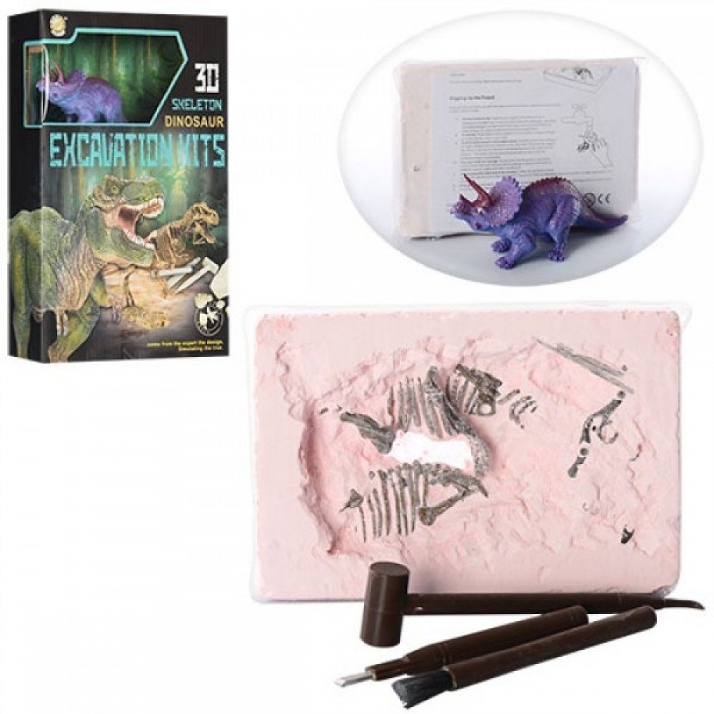 В этой коробке находится пласт окаменелой земной породы с настоящей копией скелета динозавра, а также археологический набор инструментов, необходимых для проведения раскопок. Красочная инструкция, поможет правильно подойти к процессу. После раскопки можно собрать фигурку динозавра. Можно собрать серию из разных динозавров.