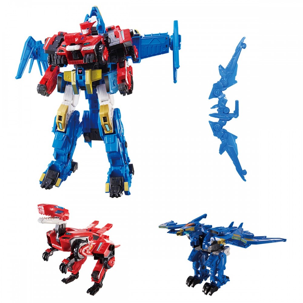 - 1 робот, который трансформируется в 2 машины и 2 динозавра;