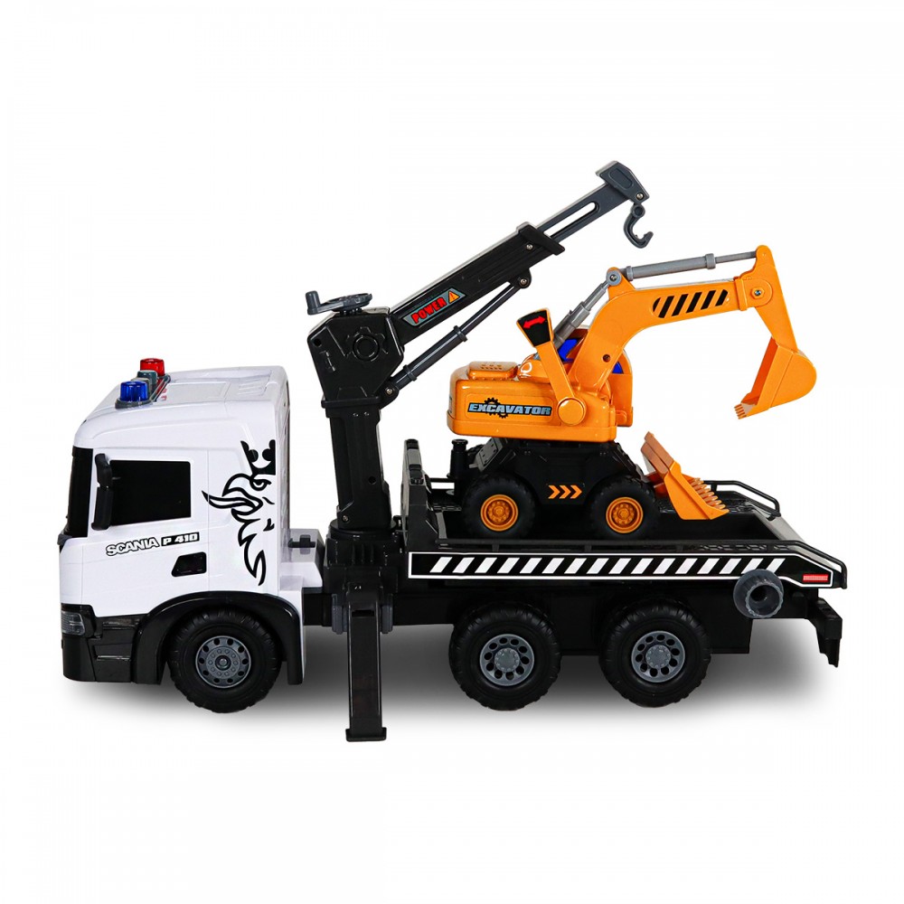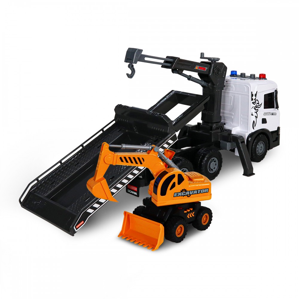 Автомодель серии 'Super Big Truck' - АВТОКРАН SCANIA С ЭКСКАВАТОРОМ открывает увлекательный мир городской техники. Эти игровые модели созданы, чтобы понравиться как малышам, так и взрослым!