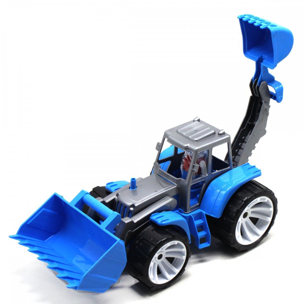 Пластиковая игрушка экскаватор будет отличным подарком для ребенка. Размер машинки - 37х16х19 см., диаметр колес - 10.5 см. (задние), 9 см. (передние). Оснащен двумя ковшами - большим спереди и поменьше - сзади. Выполнено из качественного и прочного пластика. Для детей от 3-х лет.