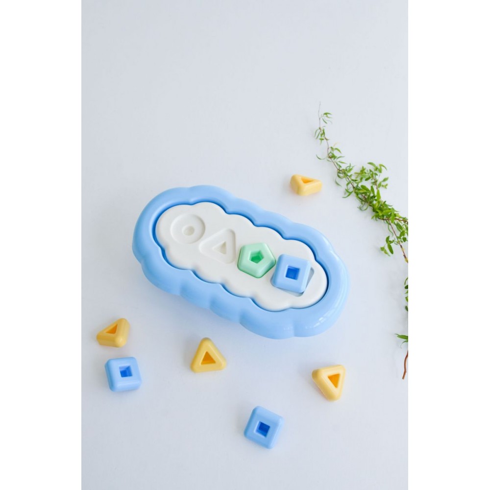 В набор входит 20 фишек: - 5 мятных одной формы (треугольник или круг или пятиугольник или квадрат) - 5 желтых одной формы (треугольник или круг или пятиугольник или квадрат) - 5 голубых одной формы (треугольник или круг или пятиугольник или квадрат) - 5