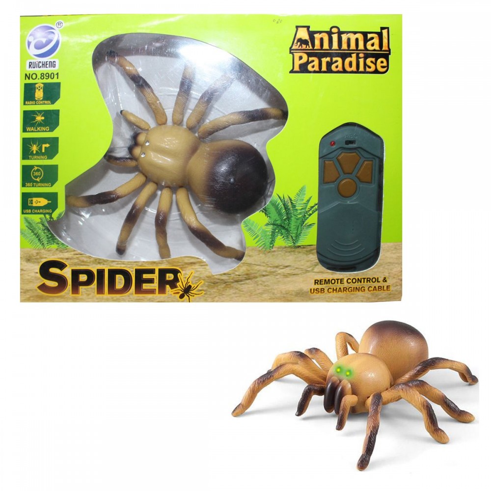 Игрушка на радиоуправлении "Паук" будет оригинальным подарком ребенку. Паук бегает во всех направлениях, живенько перебирая лапками. Управлять движением игрушки можно при помощи пульта. Размер паучка - 17х15х5 см. Игрушка работает от аккумулятора (есть в комплекте), а пульт управления - от 2-х батареек АА (нет в комплекте).