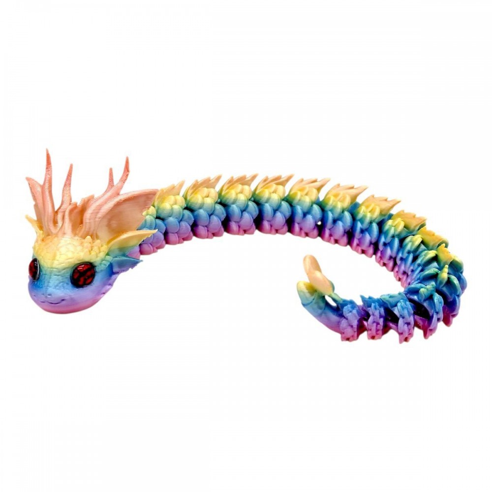 Подвижная 3D игрушка в виде королевского дракона длиной около 32 см – яркий вариант для активной игры. Гибкое сегментированное тело легко двигается, создавая эффект «живого» персонажа. Насыщенный цвет и детализированная текстура привлекают внимание. Подходит для детей от 3-х лет, развивает фантазию и сюжетное мышление.