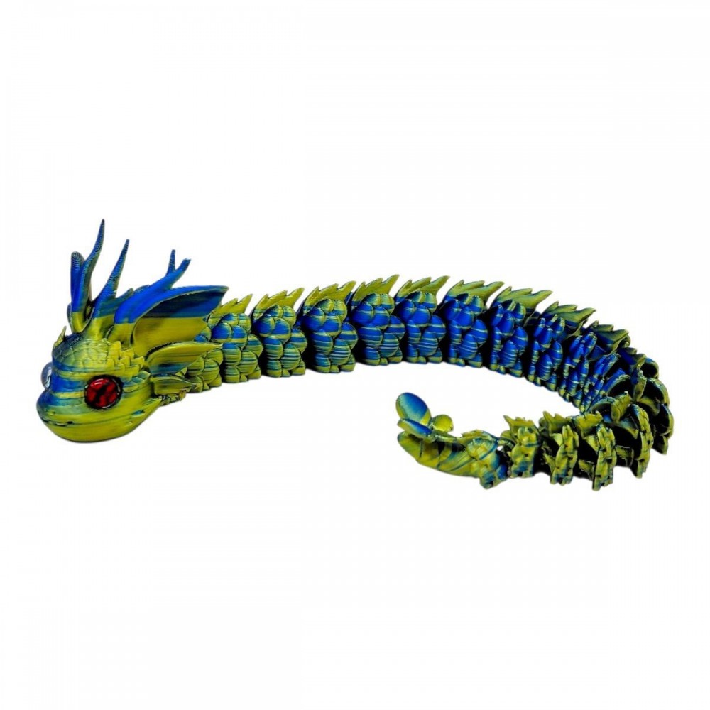 Подвижная 3D игрушка в виде королевского дракона длиной около 32 см – яркий вариант для активной игры. Гибкое сегментированное тело легко двигается, создавая эффект «живого» персонажа. Насыщенный цвет и детализированная текстура привлекают внимание. Подходит для детей от 3-х лет, развивает фантазию и сюжетное мышление.