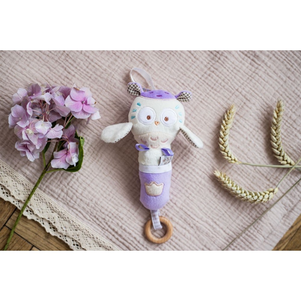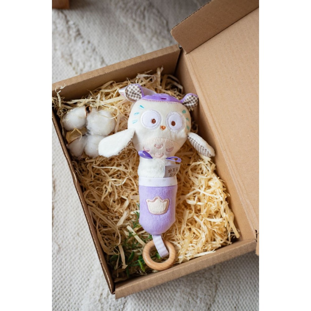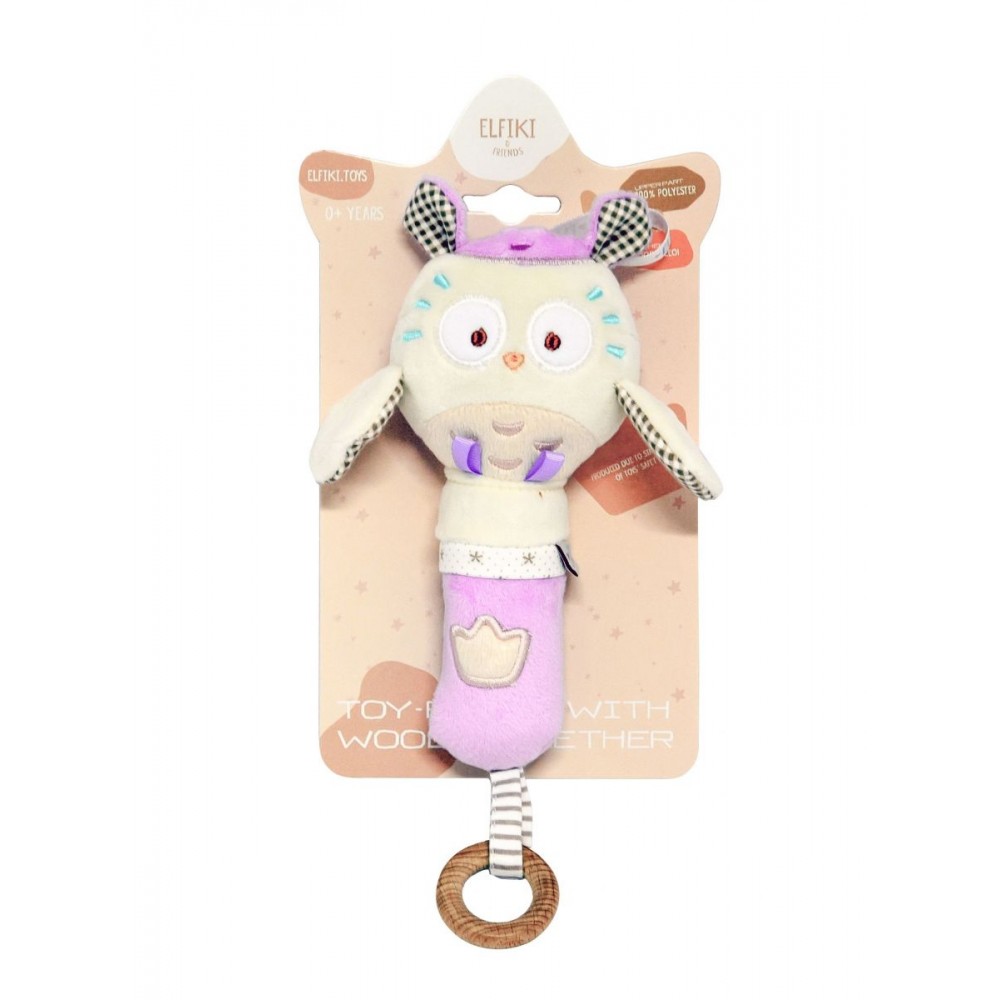 Игрушка – погремушка сова Miя от торговой марки ELFIKI из новой коллекции эко-игрушек будет неизменным другом малыша с первых дней жизни. Сразу после рождения малыш начинает активно развиваться и познавать окружающий мир. Первые игрушки новорожденного знакомят его с окружающим миром, новыми предметами и звуками. Игрушка - погремушка сова Miя от торговой марки ELFIKI изготовлена из высококачественного и гипоаллергенного материала, приятного на ощупь. Сочетание различных текстур и материалов способствует развитию тактильных ощущений и моторики. Приятный звук погремушки успокоит малыша и подарит приятные эмоции. Кроме того, игрушка стимулирует развитие внимания, зрения, слуха, формо- и звуковосприятия. Очаровательная сова Miя всегда будет вызывать улыбку и надолго увлечет малыша. Малыш с удовольствием будет проводить время, рассматривая все детали и с интересом изучая своего друга. Деревянное кольцо, изготовленное из высококачественного бука, будет отлично выполнять функцию прорезывателя. Игрушка комфортно размещается в маленькой ладошке, поэтому ребенок с легкостью сможет самостоятельно держать его одной или двумя ручками. Подходит для детей от 0 месяцев. Доступны в 5 разновидностях: косуля Руби, эльфик Пуффи, эльфик Айли, сова Мия, птичка Пипо. Игрушка - погремушка сова Miя от торговой марки ELFIKI - отличный подарок для малыша!