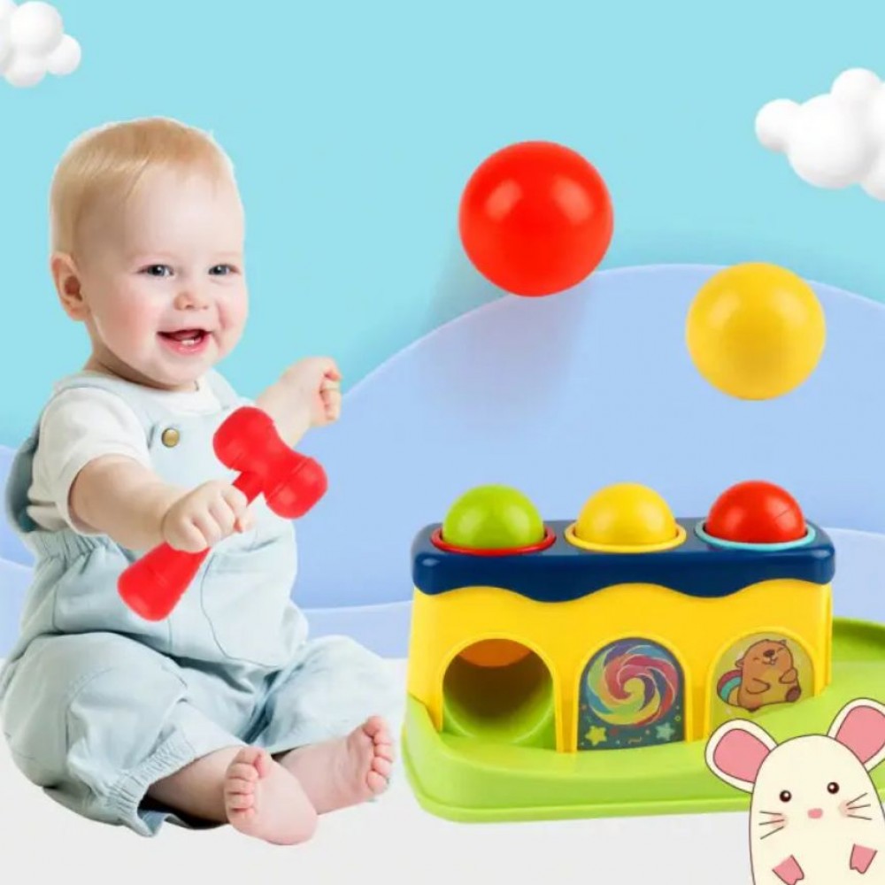 Веселая игра, которая понравится любому малышу. Комплект состоит из 3-х цветных шариков, молоточка и яркого корпуса, в котором есть 3 цветных отверстия. В процессе игры ребенку необходимо попасть молоточком по нужному шарику так, чтобы он провалился в отверстие. При ударе молотком воспроизводится приятный звук. Набор изготовлен из качественного пластика, скругленные края обеспечивают дополнительную безопасность во время игры. Игра поможет малышу научиться распознавать основные цвета, способствует развитию зрительного восприятия, мелкой моторики, точности, силы, ловкости, внимания. Игрушка рекомендована для детей от 1 года.