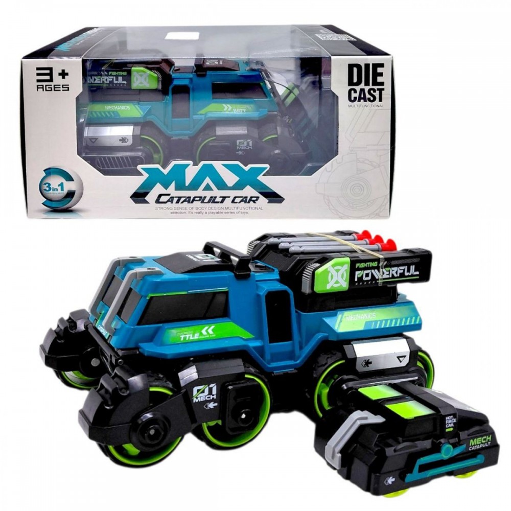 Инерционная металлическая машинка 3 в 1 с катапультой – это современная игрушка с эффектным дизайном и дополнительным игровым функционалом. Модель выполнена в стиле мощного внедорожника с металлическими элементами корпуса и механизмом запуска. Сочетание инерционного движения и катапульты делает игру динамичной и увлекательной.