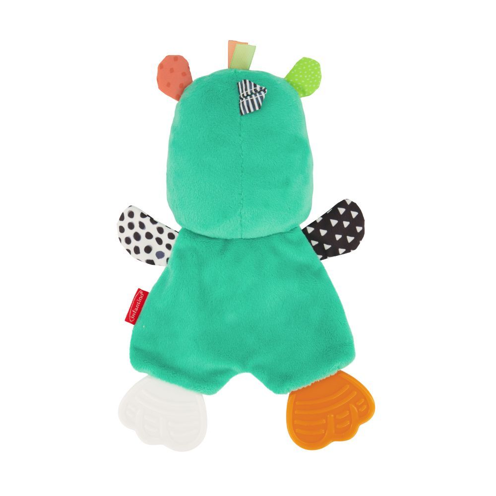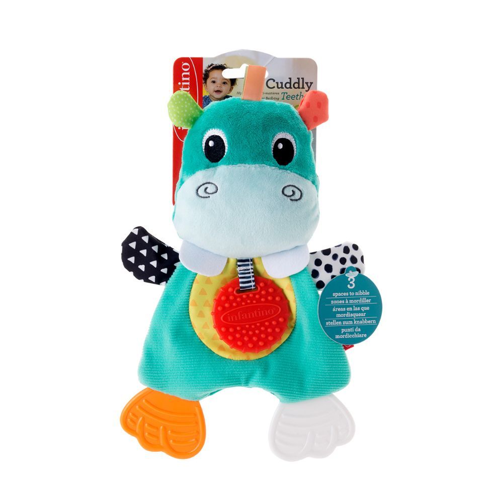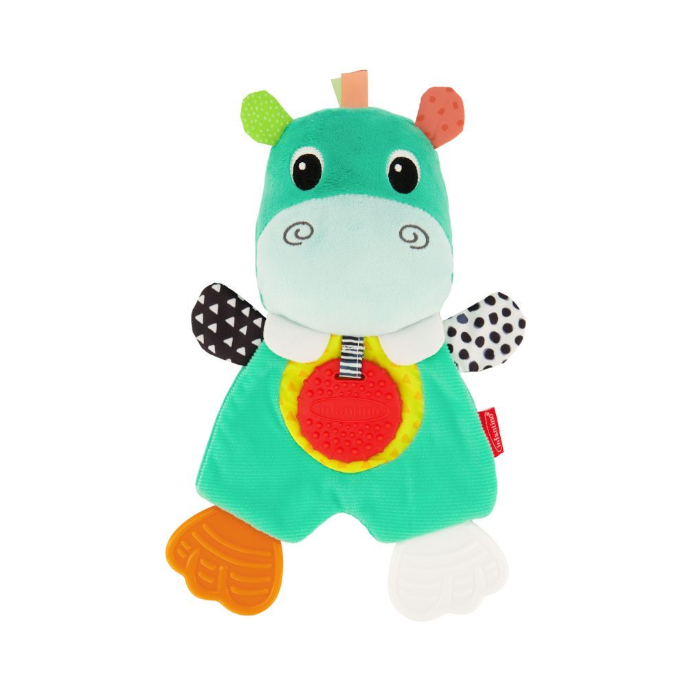 Малышу понравится его мягкая игрушка в виде бегемота с разноцветными ножками, которые можно грызть. Мягкое силиконовое кольцо идеально подойдет для прорезывания зубов и облегчения зуда десен. Разные текстуры и звук мятой бумаги развеселят малыша, который никогда не захочет расставаться со своим новым другом