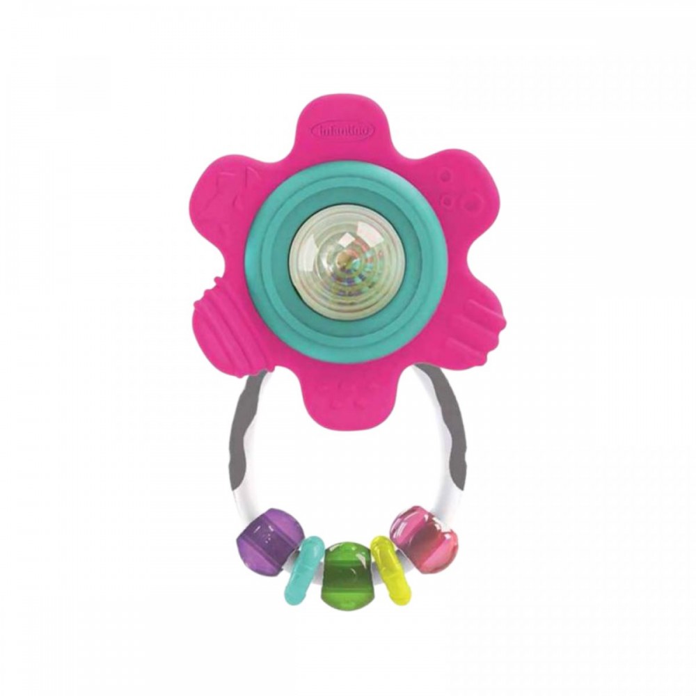 Лепестки цветка изготовлены из мягкого текстурированного материала и идеально подходят для массажа десен во время прорезывания зубов. Игрушка-погремушка имеет внутри бусины, которіе гремят. Ручка игрушки выполнена из бусин разного цвета.