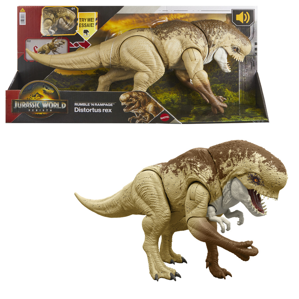 Ощутите адреналин Мира Юрского периода с этой аутентичной экшн-фигуркой динозавра Дистортус Рекс "Монстро-рёв"!