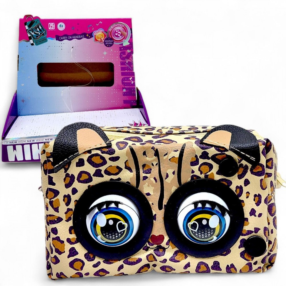 Популярная игрушка в виде интерактивной сумочки с большими глазками готова стать лучшей подружкой для малышей! Ведь маленький зверек умеет моргать, воспроизводить разные звуки и даже проигрывать музыку! Сумочка имеет вместительное отделение для хранения разных безделушек. Ремешок игрушки можно отрегулировать, что поможет сделать игру максимально комфортной. Особенности: - милый дизайн; - моргает глазами; - издает звуки и проигрывает музыку; - реагирует на ощупь головы; - кнопка включения и кнопка музыки находится на сумочке; - сумочка имеет ремешок, длину которого можно отрегулировать; - игрушка работает от 3-х батареек типа "ААА" для здоровья ребенка.