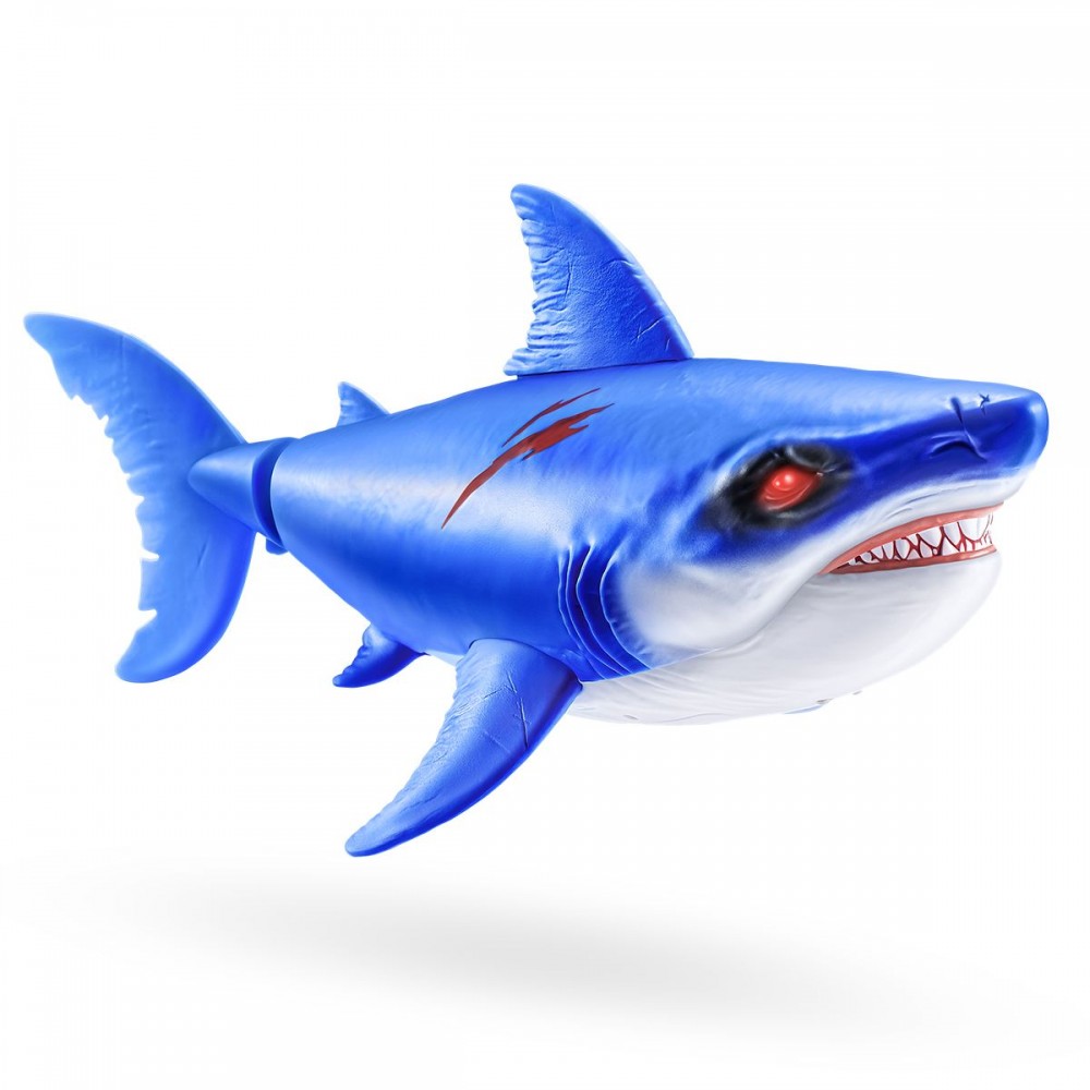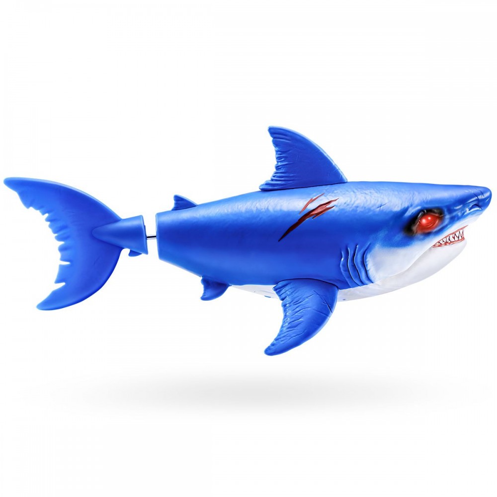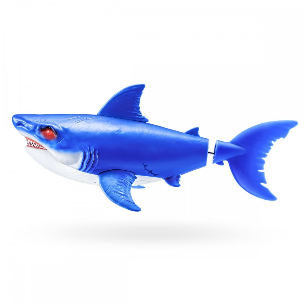 - Благодаря движению хвоста игрушка плывет, имитируя поведение настоящей акулы.