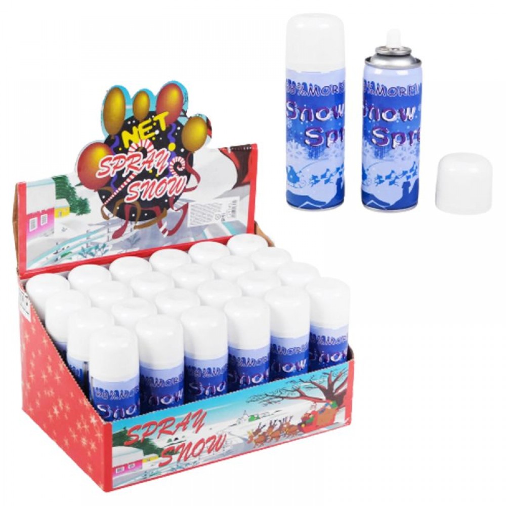 Искусственный снег. Находится в баллончике. Используется для имитации настоящего снега. Прекрасно подходит для зимних развлечений. Также с помощью него можно украшать помещения, новогодние игрушки и елки. Можно делать изображения на окнах и стенах. Форма выпуска – аэрозоль, 250мл. Цвет белый.