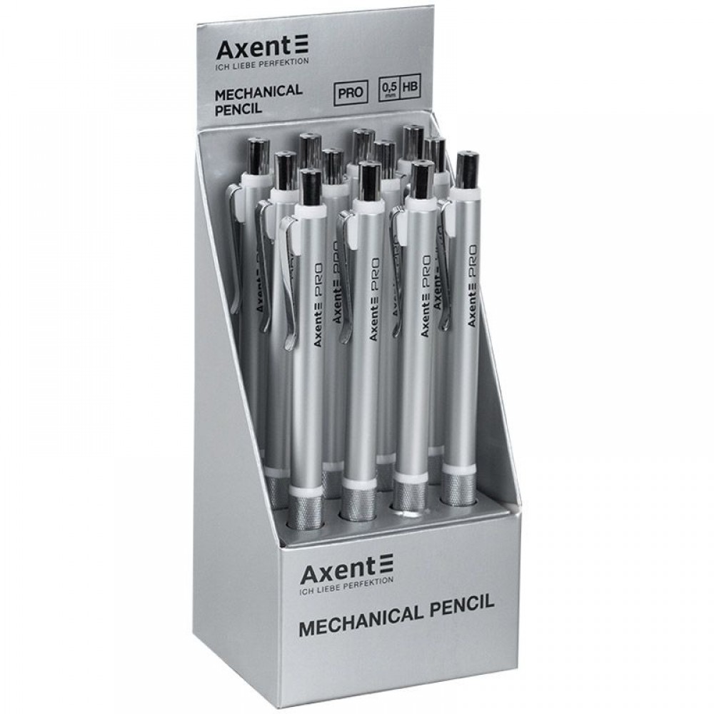 Механический карандаш Axent AMP9030 Pro, 0,5 мм – это современный, удобный и надежный инструмент для письма, черчения, рисования и воплощения творческих идей. Особенности: • рельефный грип для максимального комфорта; • металлический корпус – стильный и прочный; • диаметр грифеля 0,5 мм для точного письма и рисования; • современный лаконичный дизайн.