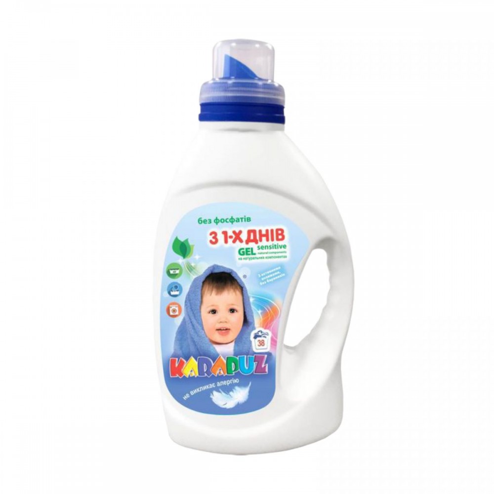 Гель для стирки детского белья с первых дней жизни Карапуз Sensitive. Для стирки хлопчатобумажных, льняных, смешанных и синтетических тканей. Не содержит фосфатов. На 1.5 л - 38 циклов ручной стирки. Способ применения: Для машинной стирки в воде мягкой и средней жесткости налейте 75 мл геля (один полный колпачок из упаковки) в отделение для порошка в стиральной машине или прямо на белье. Для сильно загрязненной одежды используйте 100 мл. При ручной стирке используйте 40 мл геля на 5 л воды.