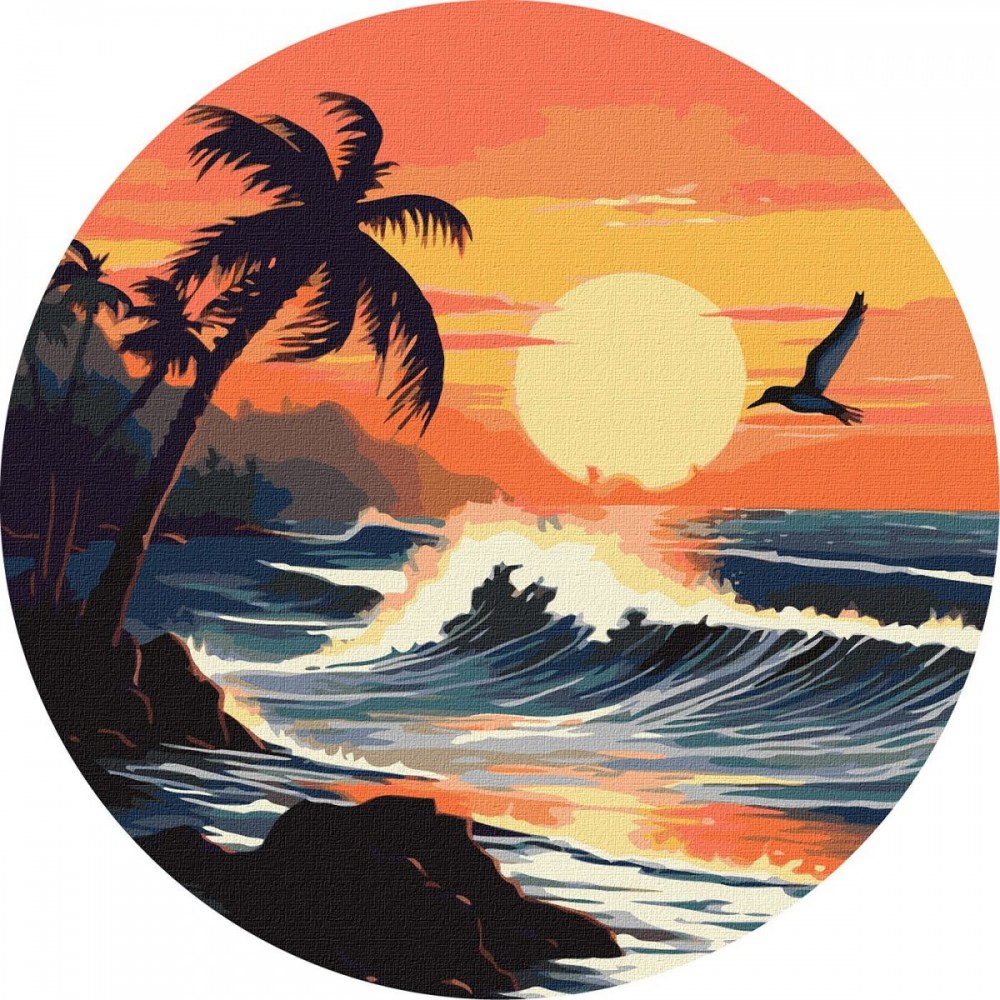 Для того, чтобы нарисовать картину, необходимо рисовать по пронумерованным контурам, которые соответствуют цвету краски. В наборе: натуральный холст на подрамнике с галерейной натяжкой, бумажная дубликат с контурным рисунком картины (на картине нанесена схема контуров изображения с нумерацией), 3 нейлоновые художественные кисти, палитра акриловых красок в контейнерах. Все необходимые краски уже в комплекте и не требуют смешивания. Диаметр: 39 см.