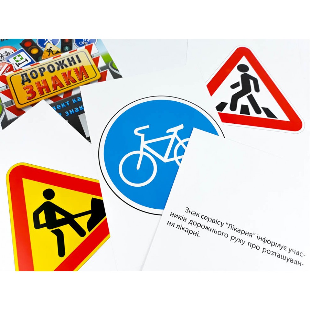 Карточки с дорожными знаками и их значениями представляют собой обучающий инструмент, используемый для изучения и запоминания дорожных знаков, которые регулируют движение на дорогах. Каждая карточка содержит изображение дорожного знака с соответствующим текстовым описанием или значением. 32 знака. Размер - 20 х 15 см.